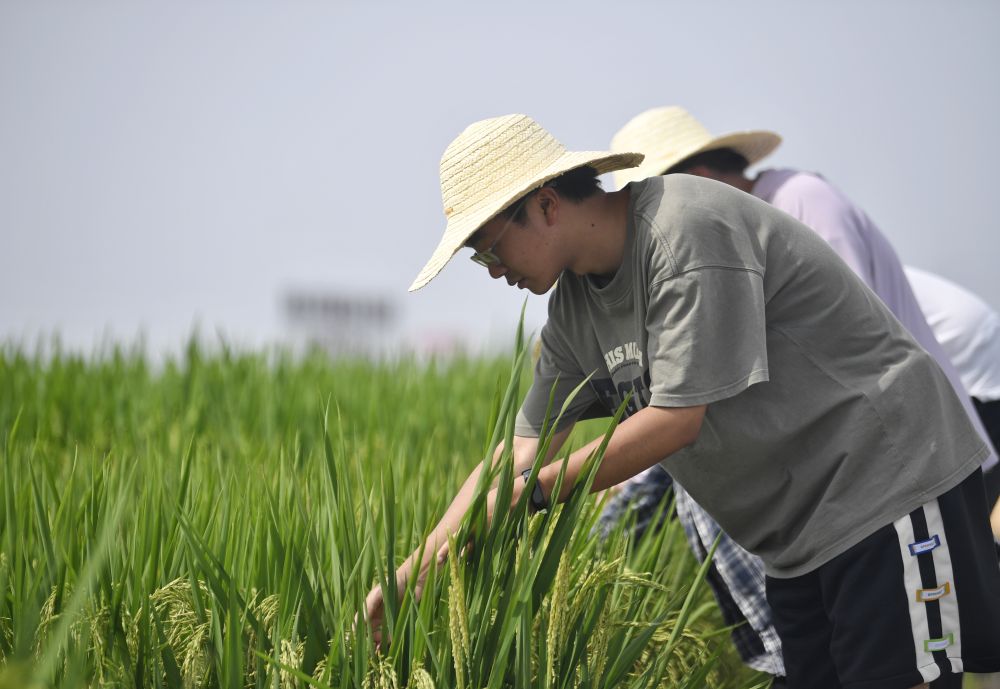 2024年7月26日,長期在永豐村高標準農田駐守的四川農業大學學生在田間觀察水稻生長情況。