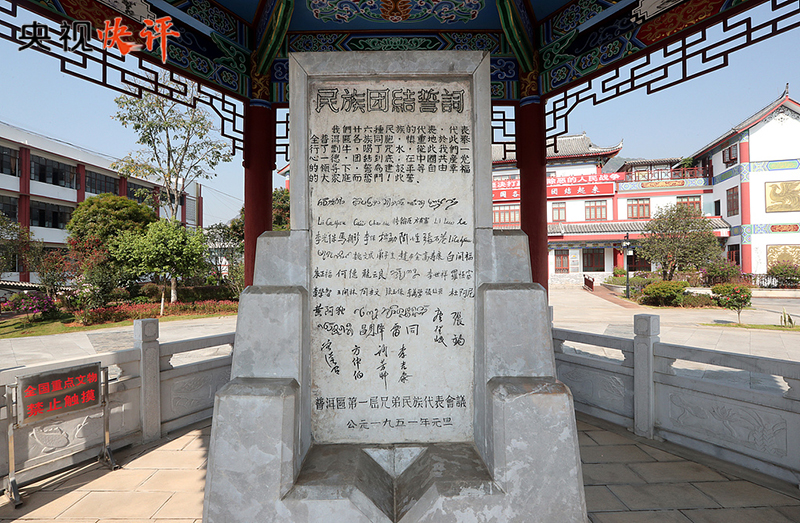 普洱民族團(tuán)結(jié)誓詞碑被譽(yù)為“新中國民族團(tuán)結(jié)第一碑”。1950年,云南普洱專區(qū)各族代表應(yīng)邀到北京參加新中國成立一周年慶祝活動,受到毛澤東等黨和國家領(lǐng)導(dǎo)人親切接見。1951年元旦,普洱專區(qū)各族群眾舉行盟誓大會,以少數(shù)民族的風(fēng)俗習(xí)慣立下誓詞碑。盟誓立碑后,各民族兄弟姐妹用實際行動踐行“一心一德跟黨走”的錚錚誓言,推動邊疆地區(qū)經(jīng)濟(jì)社會發(fā)展取得了歷史性成就,書寫了民族團(tuán)結(jié)進(jìn)步生動篇章。