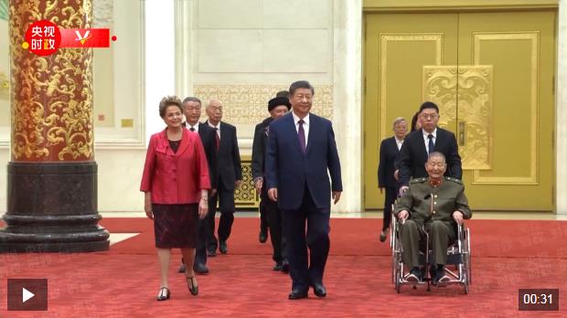 習近平指出,75年來,世界上有很多與中國人民志同道合、風雨同舟的老朋友、好朋友,今天被授予“友誼勛章”的迪爾瑪·羅塞芙女士就是其中的杰出代表。中國人民永遠不會忘記那些為中國發展、增進中國人民同各國人民友誼作出突出貢獻的國際友人。中國人民愿攜手世界各國人民,維護世界和平,促進共同發展,推動構建人類命運共同體,開創人類更加美好的未來。