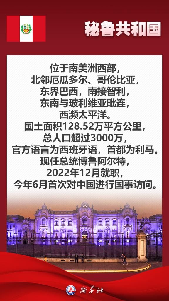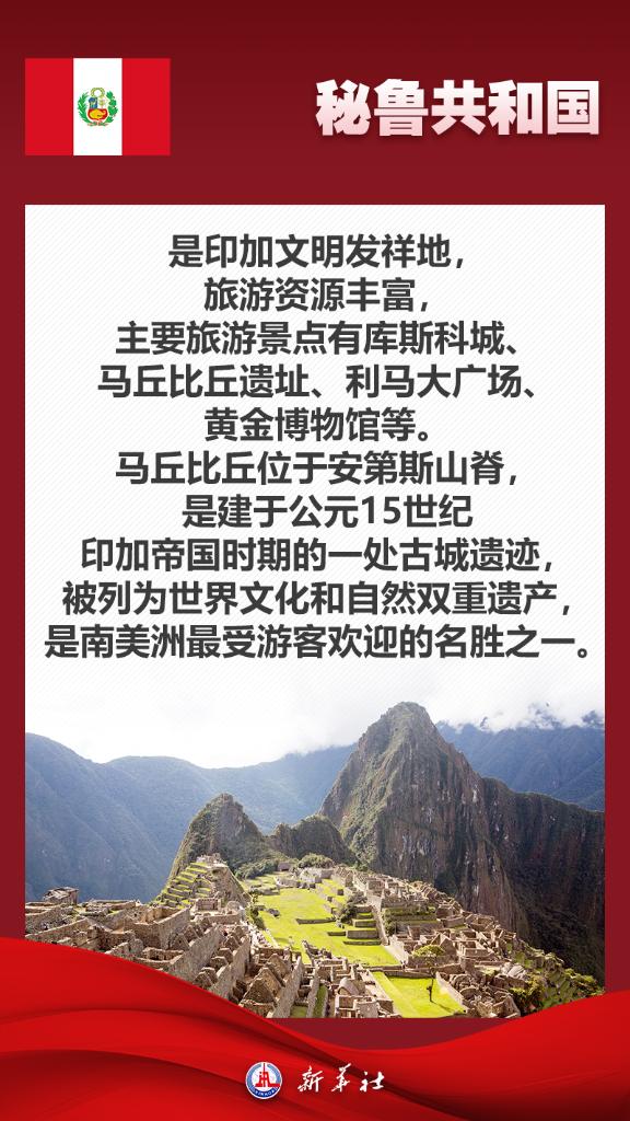應秘魯共和國總統博魯阿爾特邀請,國家主席習近平將于11月13日至17日赴利馬出席亞太經合組織第三十一次領導人非正式會議并對秘魯進行國事訪問。秘魯位于南美洲西部,是印加文明發祥地,也是最早同新中國建交的拉美國家之一。關于秘魯,七張海報帶你了解更多——