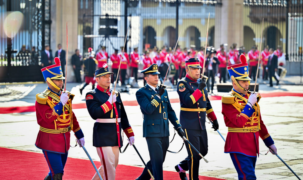 當(dāng)?shù)貢r(shí)間11月14日下午,國家主席習(xí)近平同秘魯總統(tǒng)博魯阿爾特舉行會談。在秘魯禮賓馬隊(duì)護(hù)衛(wèi)下,習(xí)近平乘車抵達(dá)總統(tǒng)府,受到博魯阿爾特總統(tǒng)熱情迎接。博魯阿爾特在總統(tǒng)府前廣場為習(xí)近平舉行隆重盛大歡迎儀式。