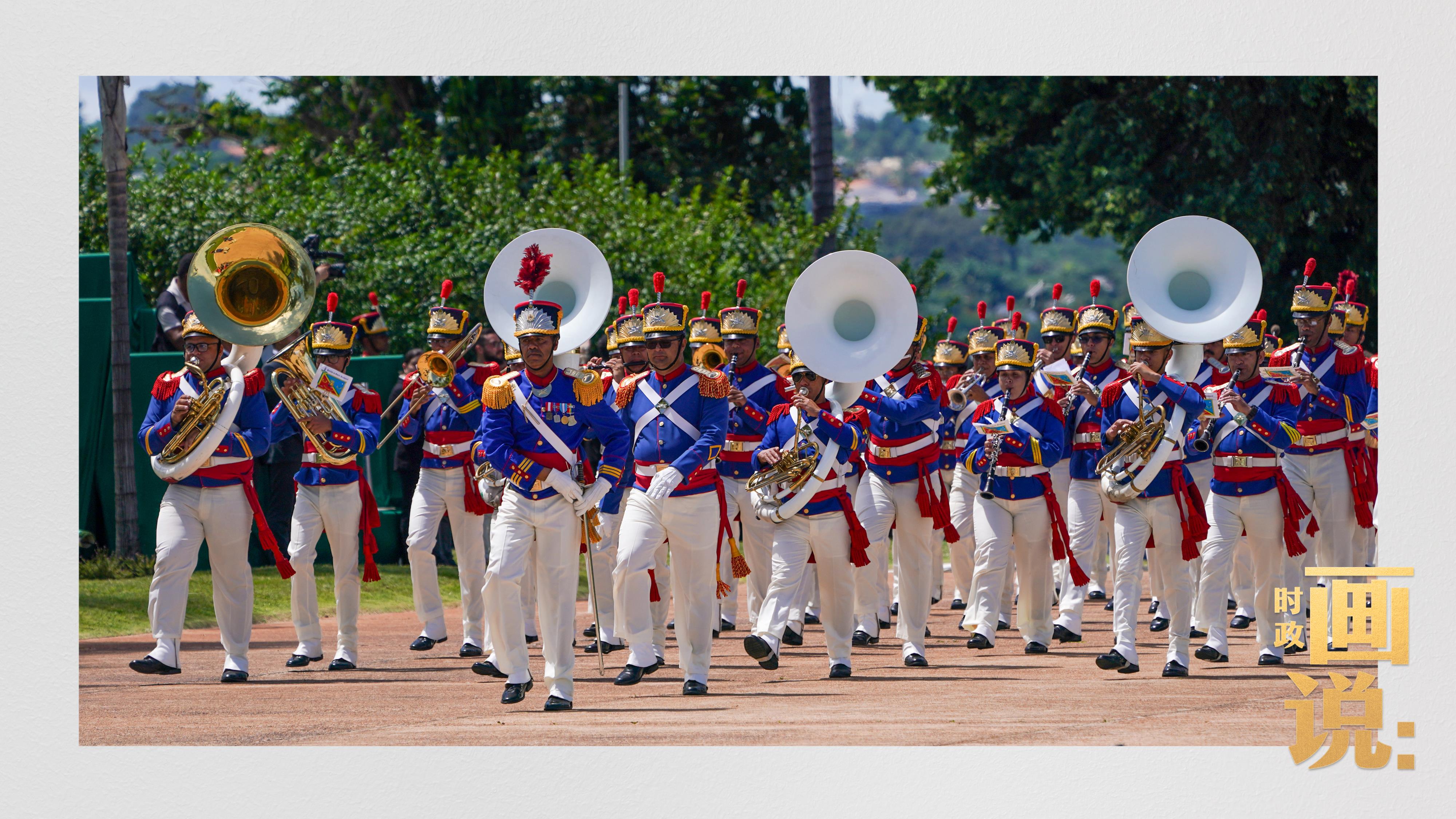 騎兵護(hù)衛(wèi)習(xí)近平主席專車抵達(dá)儀式現(xiàn)場(chǎng),巴西藝術(shù)家用中文深情唱響中國(guó)經(jīng)典民歌《我的祖國(guó)》,現(xiàn)場(chǎng)氣氛隆重?zé)崃摇?/p>