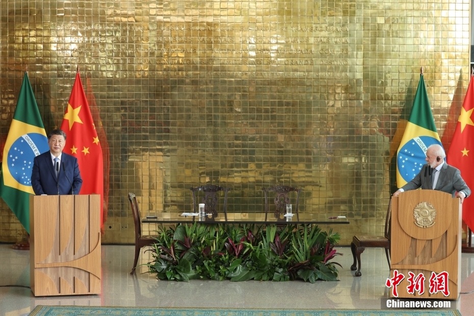 當地時間11月20日,中國國家主席習近平在巴西利亞總統官邸同巴西總統盧拉舉行會談。會談后,兩國元首共同會見記者。中新社記者 盛佳鵬 攝