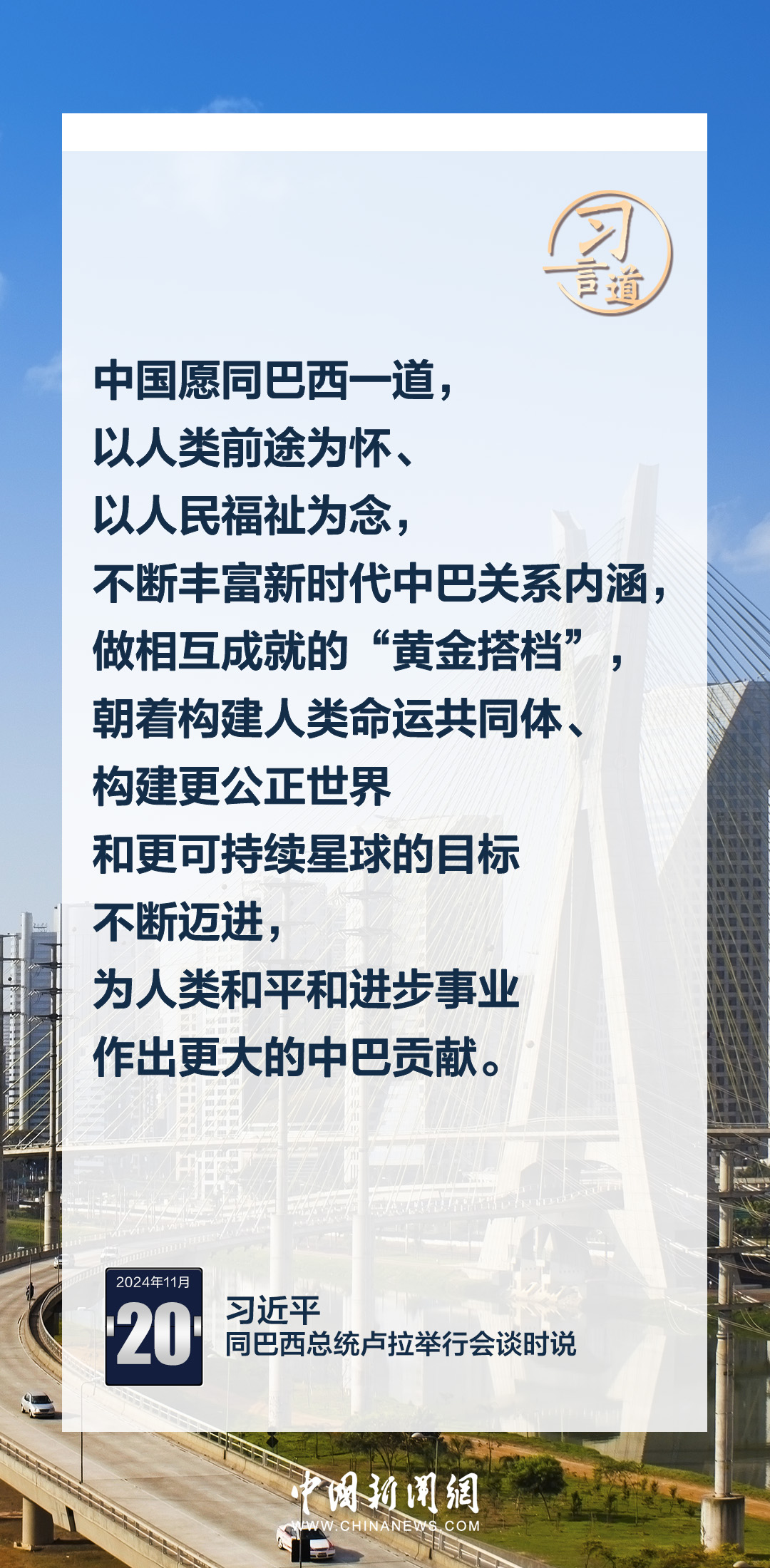 當地時間11月20日,中國國家主席習近平在巴西利亞總統官邸同巴西總統盧拉舉行會談。習近平指出——