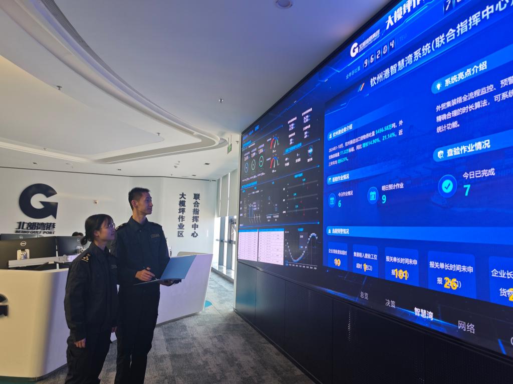 在上線“智慧灣”系統基礎上,海關與港口物流、報關、鐵路等各方打破數據信息壁壘,共同破解通關堵點難點問題。2024年,欽州港口岸總體集疏運效率提升約25%。