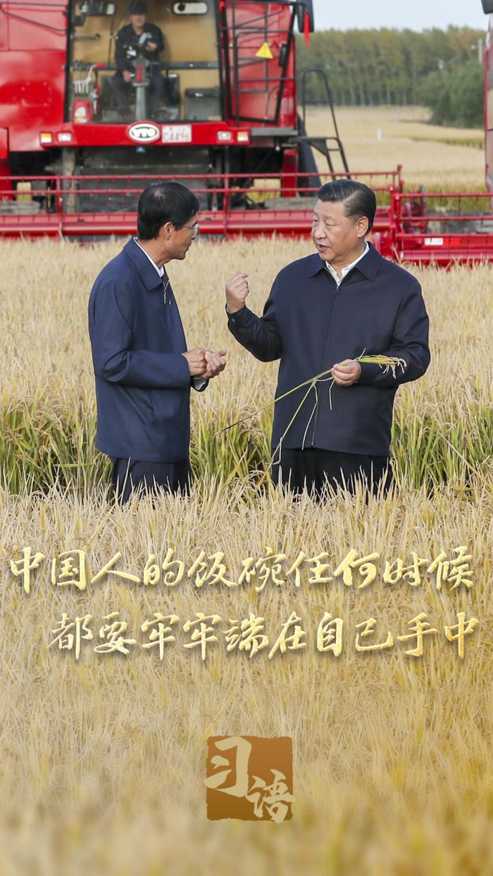 “堅決守住18億畝耕地紅線”、“樹立大農業觀、大食物觀”、“要健全種糧農民收益保障機制”、“要落實藏糧于地、藏糧于技戰略”、“集中力量破難題、補短板、強優勢、控風險,實現種業科技自立自強、種源自主可控”……習近平總書記對端牢中國飯碗作出一系列部署,他強調:“我國有14億多人口,糧食安全必須靠我們自己保證,中國人的飯碗應該主要裝中國糧。”