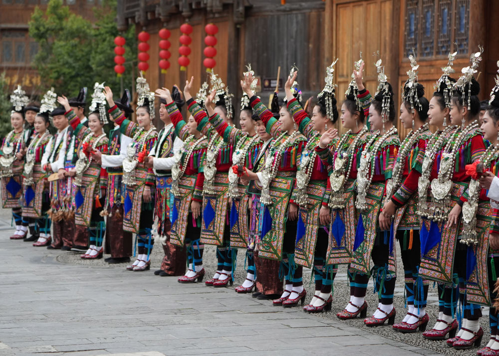 2025年3月14日,村民在肇興侗寨內通過手機直播銷售刺繡作品。侗繡承載著侗族人的信仰與記憶,年輕繡娘的手藝多半來自母親傳承,侗族婦女用一針一線將民族古老的神話傳說、歷史風俗記錄在服飾的紋樣里,讓這門手藝在侗鄉世代傳承。2011年,侗族刺繡被列入國家級非物質文化遺產名錄。