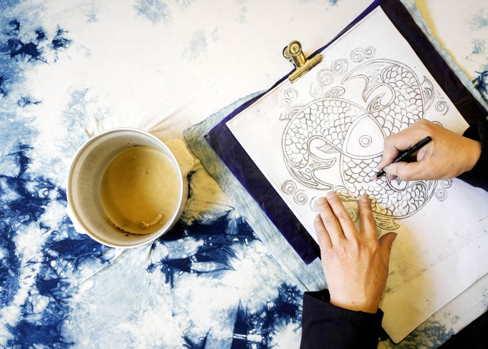2025年3月14日,村民在肇興侗寨內制作蠟染。近年來,當地加大對少數民族非遺文創產品的研發和創新力度,同時進一步加強線上銷售,通過微信、網上直播、網店等方式進行帶貨,讓當地群眾通過指尖增收致富。