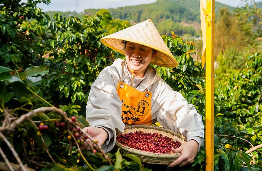 咖農在采摘咖啡。思茅區融媒體中心供圖