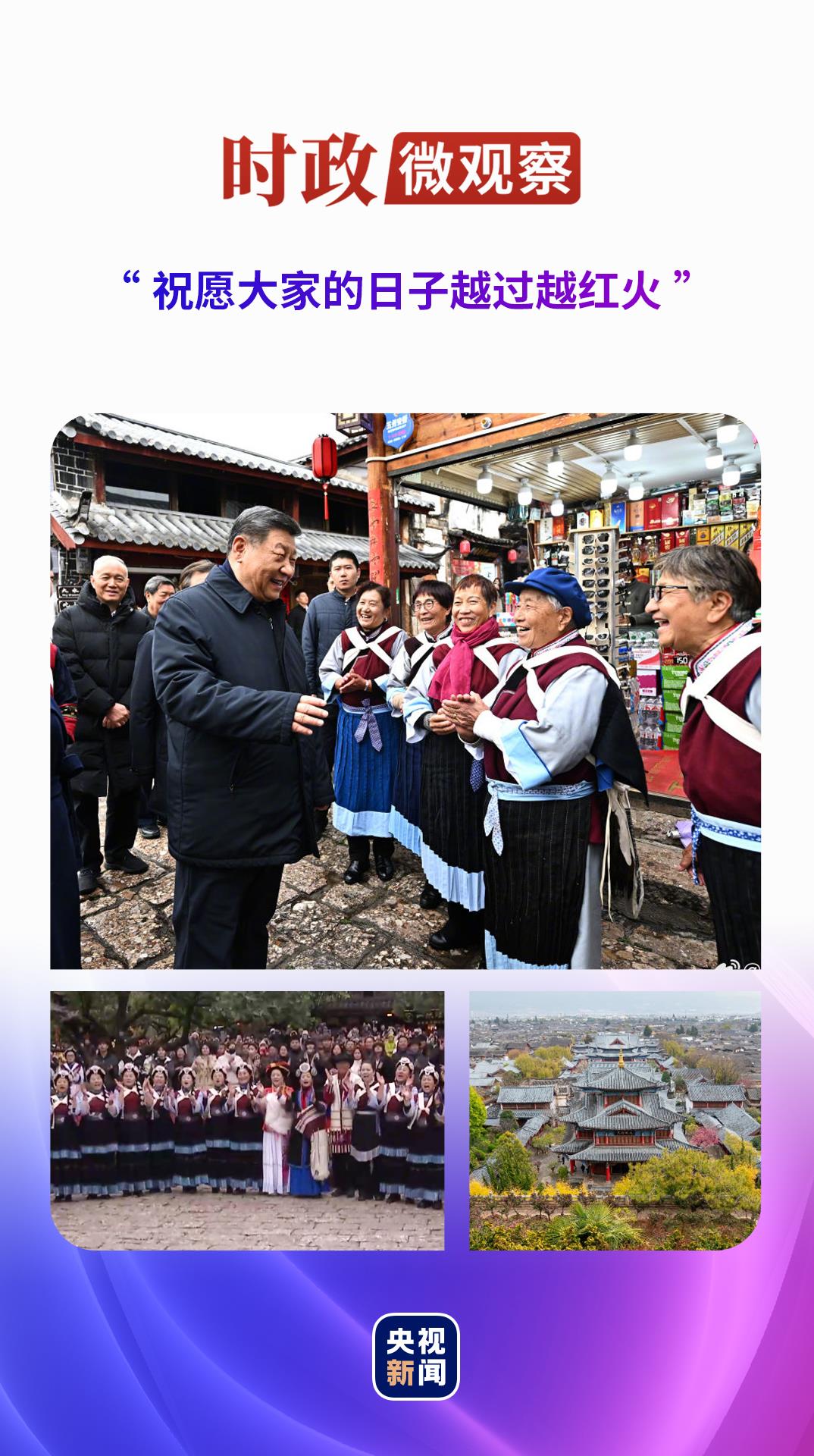今年3月19日,習(xí)近平總書記再次來到云南考察,在麗江古城沿著石板路邊走邊看,不時(shí)停下腳步同大家親切交流。古城居民和游客見到總書記十分興奮,爭(zhēng)相問好,有的還彈奏樂器、載歌載舞歡迎總書記。習(xí)近平總書記祝福大家,“希望你們的生活幸福安康,就像納西族的大姓‘和’姓一樣,和和美美”。