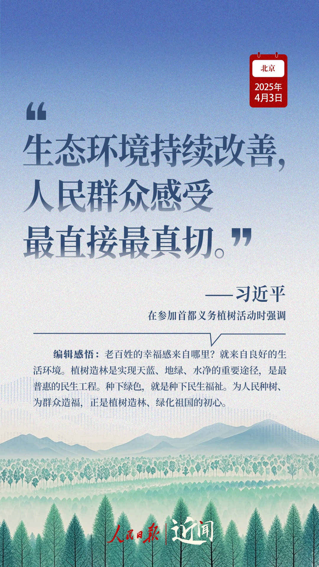 “生態(tài)環(huán)境持續(xù)改善,人民群眾感受最直接最真切。”“義務植樹是全民行動,要一代接著一代干下去。”在植樹現(xiàn)場,從這些話語讀懂一份堅持、一種情懷。