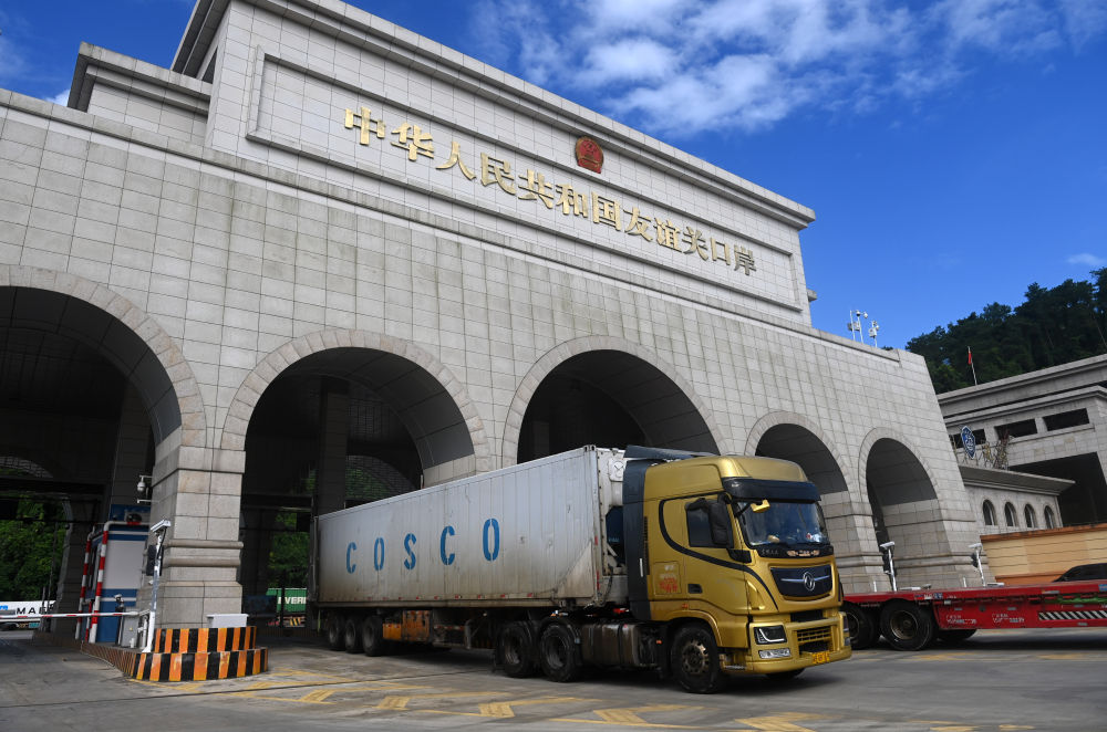 2024年8月26日,一輛貨車通過廣西憑祥友誼關口岸。友誼關口岸是西部陸海新通道的重要節點,是中國通往東盟最大的陸路口岸,也是我國通往越南最便捷的陸路大通道之一。滿載著東盟國家特色水果、農副產品與中國電子配件、大型設備等貨品的車輛在此“雙向奔赴”、川流不息。2024年,友誼關口岸年內出入境貨車數量首次突破50萬輛次,同比增長15.96%,創歷史新高。