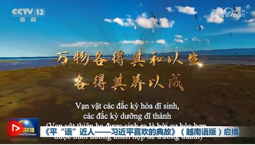 在中共中央總書記、國家主席習(xí)近平對越南進行國事訪問之際,4月14日,由中國中央廣播電視總臺制作的《平“語”近人——習(xí)近平喜歡的典故》(越南語版)在越南啟播。慶祝中越建交75周年人文交流活動同日在河內(nèi)舉行。越南總理范明政致賀信,對節(jié)目播出和活動成功舉辦表示祝賀。