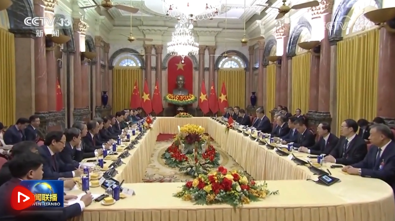 習近平強調,中越雙方要以中越友好合作的穩定性和社會主義制度的優越性應對外部形勢的不確定性,推動中越命運共同體航船沿著正確航道破浪前行。政治上要把住前行之舵,保持高層戰略溝通,加強治黨治國經驗互學互鑒,共同提高黨的領導能力,攜手走穩走好各自社會主義道路。安全上要鑄牢團結之錨,以兩國外交、國防、公安“3+3”戰略對話機制升格為契機,持續深化防務和執法安全合作,中方支持越方籌備好越共十四大,支持越方維護國家主權、安全、發展利益。經濟上要執穩合作之楫,加強發展戰略對接,落實好共建“一帶一路”倡議和“兩廊一圈”框架對接合作規劃,深化鐵路、公路、航空多維互聯互通,保障產業鏈供應鏈穩定暢通,拓展5G、人工智能、綠色發展等新興領域合作,以新質生產力賦能兩國全方位合作格局。人文上要揚起友誼之帆,辦好今年“中越人文交流年”系列活動,實施更多“小而美”民生項目,通過文化、旅游、媒體、地方等交流,讓中越友好更加深入人心。