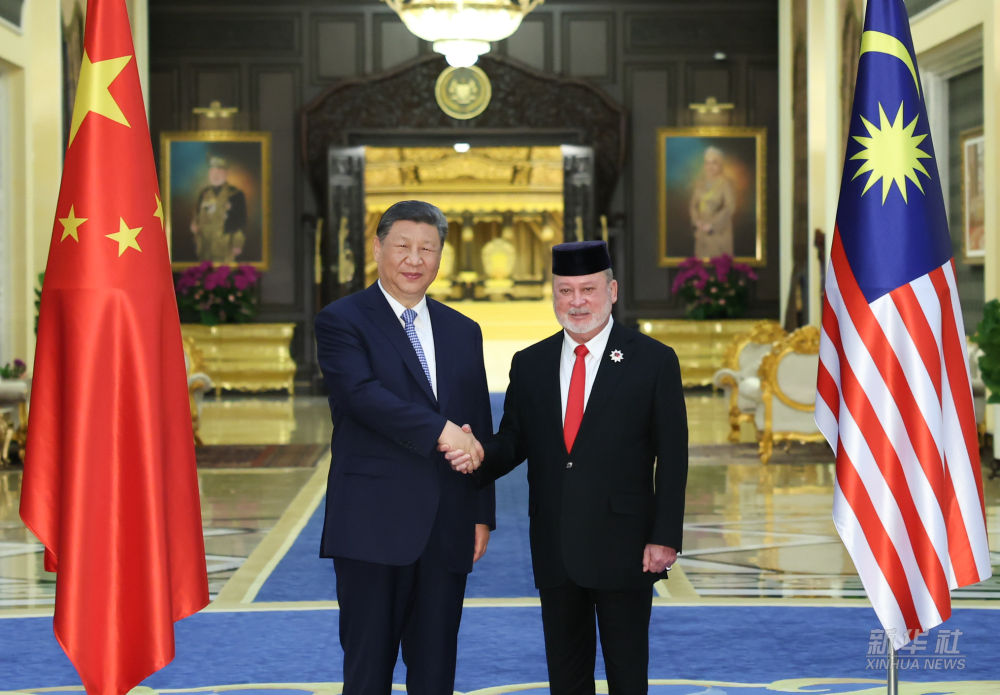 4月16日上午,馬來(lái)西亞最高元首易卜拉欣在馬來(lái)西亞國(guó)家王宮同中國(guó)國(guó)家主席習(xí)近平舉行會(huì)見。