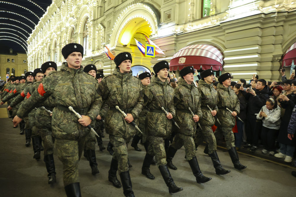 5月3日晚,受閱方隊在俄羅斯首都莫斯科前往紅場參加彩排。當日,俄羅斯紀念蘇聯偉大衛國戰爭勝利80周年閱兵式彩排在莫斯科舉行。新華社記者 姚大偉 攝