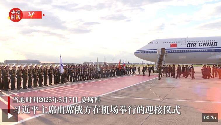 當(dāng)?shù)貢r間5月7日晚,國家主席習(xí)近平乘專機抵達莫斯科,應(yīng)俄羅斯總統(tǒng)普京邀請,對俄羅斯進行國事訪問并出席紀念蘇聯(lián)偉大衛(wèi)國戰(zhàn)爭勝利80周年慶典。