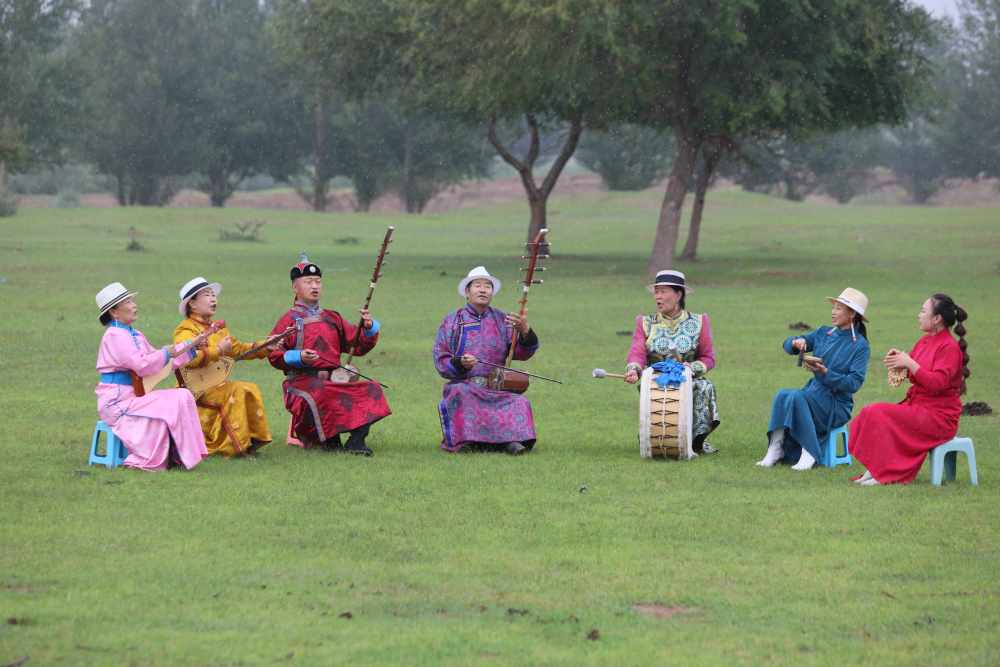 2024年7月16日,《格薩(斯)爾》史詩說唱傳承人在內蒙古赤峰市巴林右旗戶外表演。(胡斯楞攝)