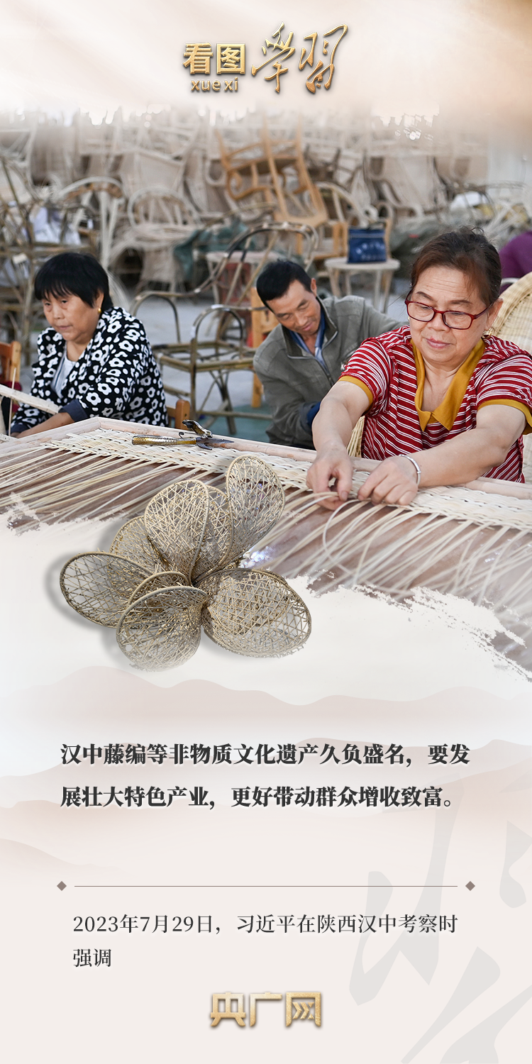 從古典民族史詩《格薩(斯)爾》到潮繡、潮瓷、潮劇和工夫茶,再到漢中藤編、常德絲弦……在各地考察調研時,習近平總書記曾多次就文化傳承發展、非物質文化遺產保護作出重要指示,強調要“讓非物質文化遺產綻放出更加迷人的光彩”。