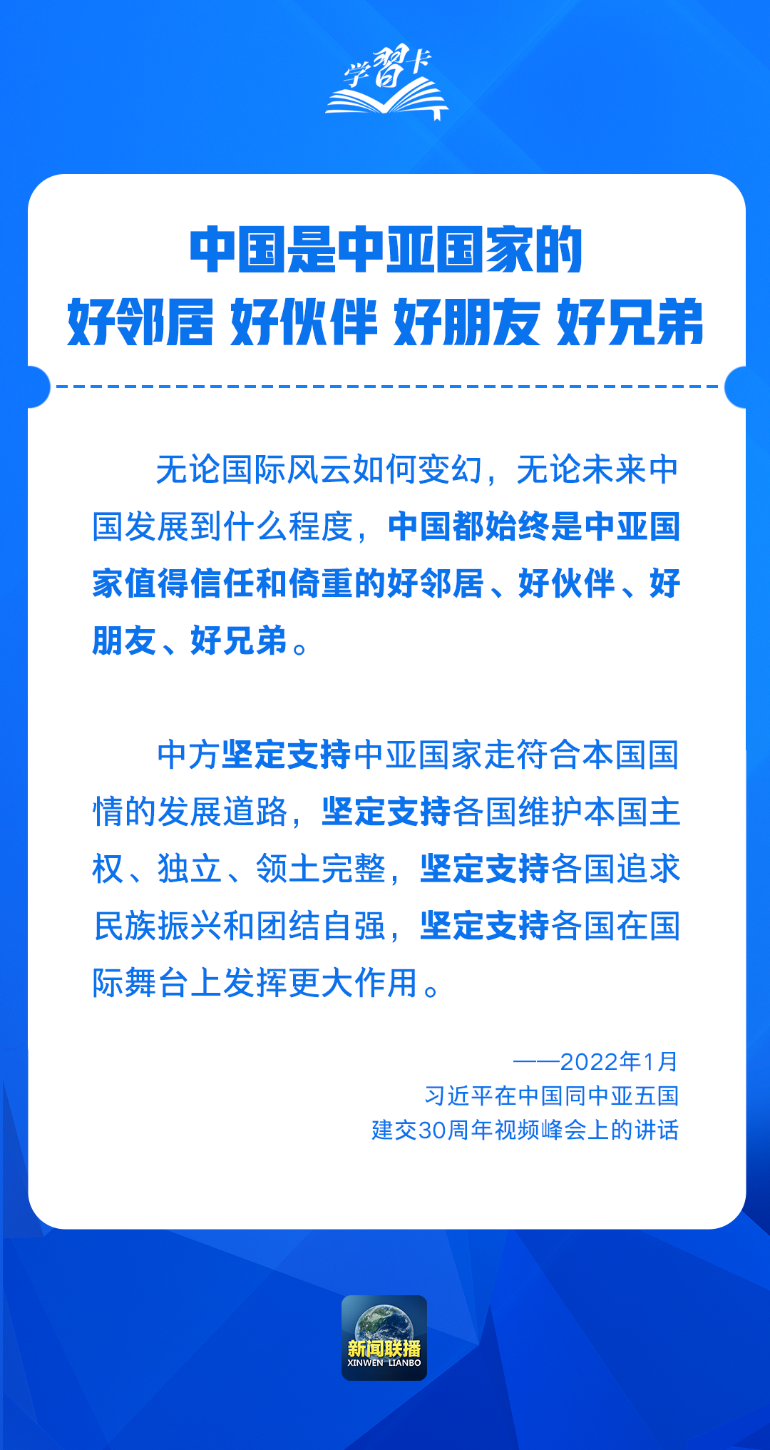 中亞是亞歐大陸的中心,處在聯通東西、貫穿南北的十字路口。習近平主席強調,深化中國—中亞合作,是我們這代領導人著眼未來作出的戰略抉擇,順應世界大勢,符合人民期盼。