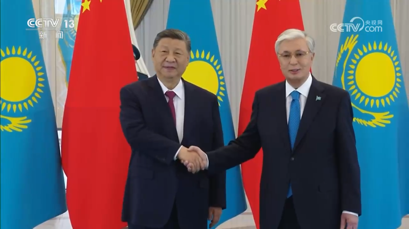 當地時間6月16日下午,哈薩克斯坦總統托卡耶夫同中國國家主席習近平在阿斯塔納總統府舉行會談。