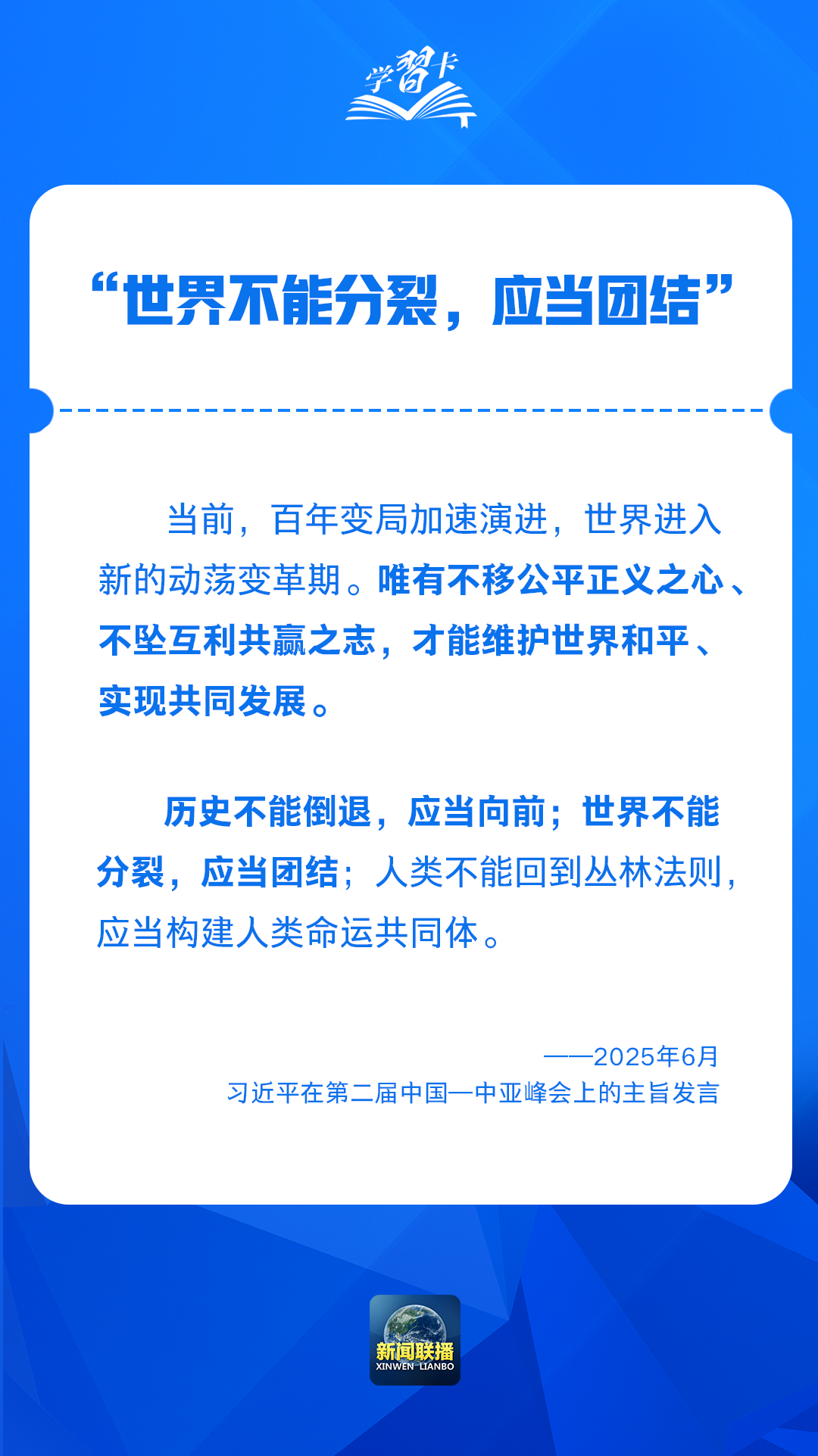 習近平表示,中國中亞合作根植于兩千多年的友好往來,鞏固于建交30多年的團結互信,發展于新時代以來的開放共贏。中方愿同各方一道努力,弘揚“中國—中亞精神”,錨定命運共同體目標,推動中國中亞合作不斷取得新的成就。
