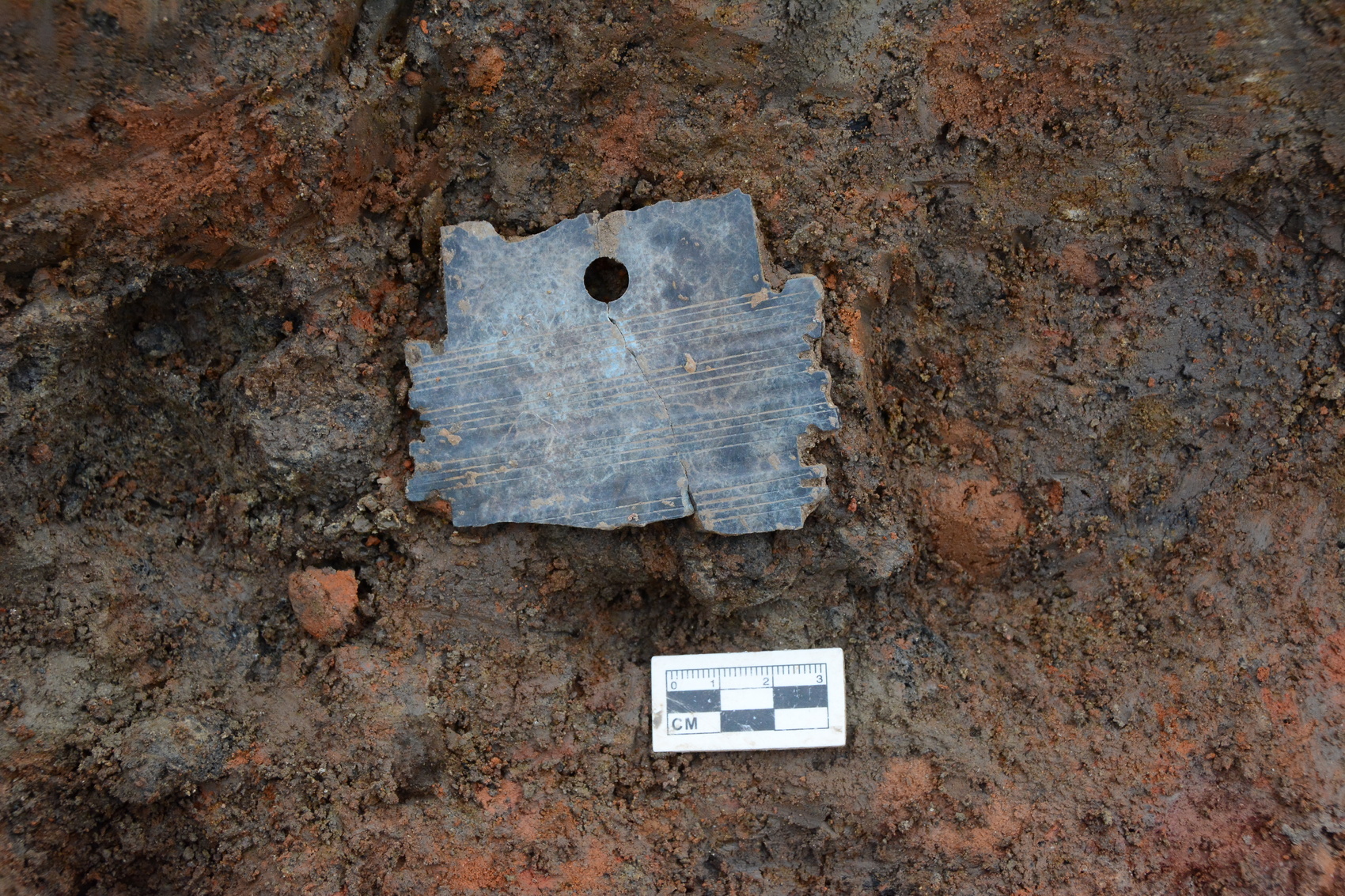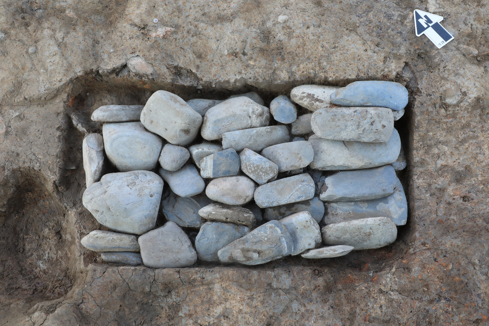 隨著工作的推進,考古人員又在月亮灣小城東南部的燕家院子地點發現了一處人工堆筑的土臺。“土臺面積超過6000平方米,采用了斜坡堆筑的建筑方式,與月亮灣小城東城墻等基本一致。”喬鋼介紹,尤其值得一提的是,燕家院子人工土臺初步判斷為多級土臺,最上層土臺上還發現了一處大型房屋建筑基址,面積超過200平方米,并且外圍可能存在回廊。這處建筑基址的最大單間,目前已揭露了90多平方米。房屋基槽內的填充物則全是陶“板狀器”,可以看出大多經過火燒、直立插入基槽,或許代表了木骨泥墻以外的砌墻工藝的出現。