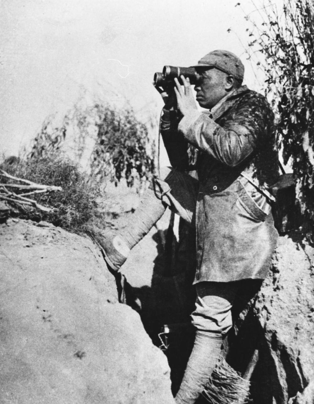 百團(tuán)大戰(zhàn),是抗日戰(zhàn)爭中八路軍在華北地區(qū)發(fā)動的一次規(guī)模最大、持續(xù)時(shí)間最長的進(jìn)攻戰(zhàn)役,先后有105個團(tuán)約20余萬人參加,僅前3個半月,就作戰(zhàn)1824次,斃傷日、偽軍2.58萬人,俘虜1.8萬余人。這是彭德懷身處前線指揮百團(tuán)大戰(zhàn)(中國照片檔案館館藏)。