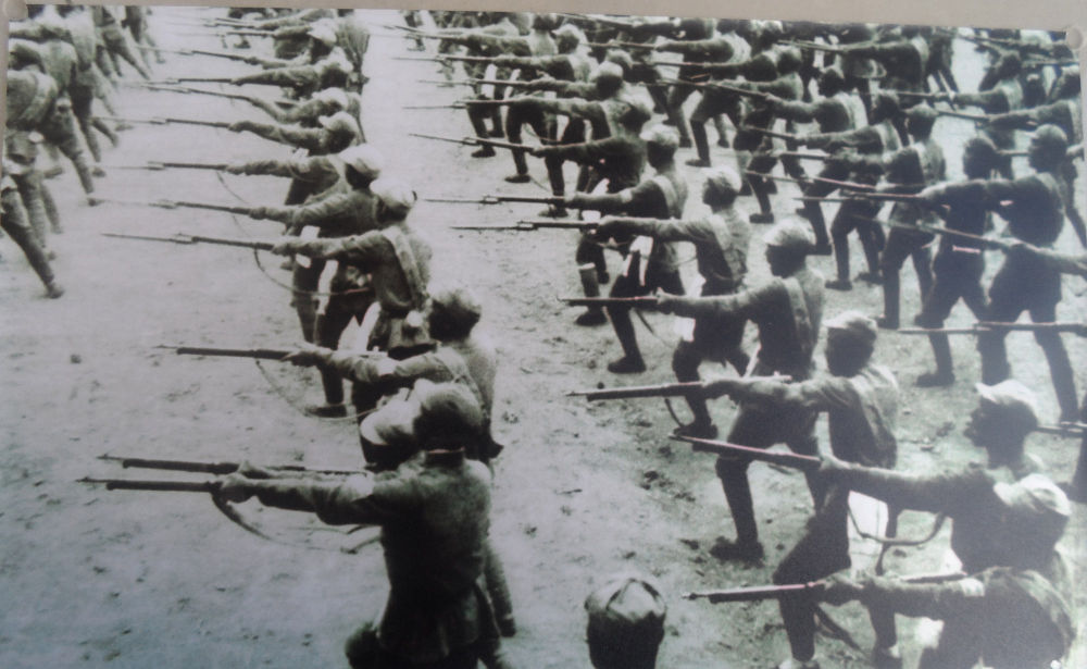 雄連”榮譽(yù)稱號。這是抗戰(zhàn)時(shí)期,8連官兵苦練刺殺(資料照片)。