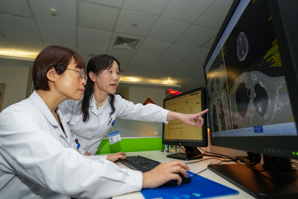 2024年8月6日,江蘇省人民醫院醫生在放射科讀片室分析醫學影像,并將影像及診斷結論上傳至江蘇省衛生健康云影像平臺,供患者在省內醫院就醫使用。近年來,江蘇省持續推進省衛生健康云影像平臺建設,實現省內影像檢查結果互認。在患者省時、省心、省錢的同時,醫生的診療效率和準確性也不斷提升。