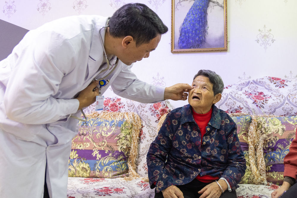 2024年10月10日,一名家庭醫生在重慶高新區白市驛鎮驛站社區上門為老人做健康檢查。近年來,重慶高新區積極探索養老服務創新形式,通過“智慧養老云平臺”監測健康數據,為獨居、空巢、失能等困難老年人提供生活照料、精神慰藉、文娛教育、健康管理等個性化服務,讓轄區老年人享受到優質、便捷的居家養老服務。