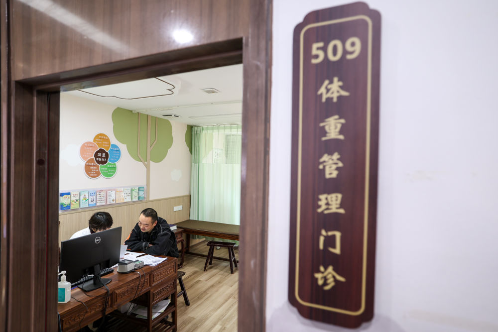 2025年3月17日,居民在杭州市拱墅區文暉街道社區衛生服務中心體重管理門診就診。近一年來,浙江省杭州市各級醫院積極響應“體重管理年”號召,逐步開設體重管理門診,倡導并推廣文明健康的生活方式,提升市民體重管理意識與技能。