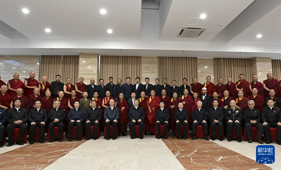 8月20日下午,中共中央總書(shū)記、國(guó)家主席、中央軍委主席習(xí)近平在拉薩親切接見(jiàn)西藏自治區(qū)宗教界愛(ài)國(guó)人士和寺管會(huì)干部代表,并同大家合影留念。新華社記者 李響 攝