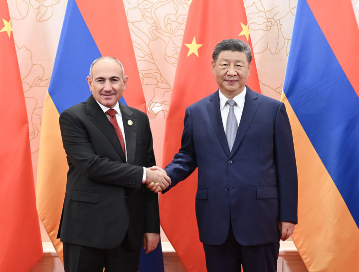 8月31日上午,國家主席習近平在天津迎賓館會見來華出席2025年上海合作組織峰會和紀念中國人民抗日戰爭暨世界反法西斯戰爭勝利80周年活動的亞美尼亞總理帕什尼揚。兩國領導人宣布,中國和亞美尼亞建立戰略伙伴關系。