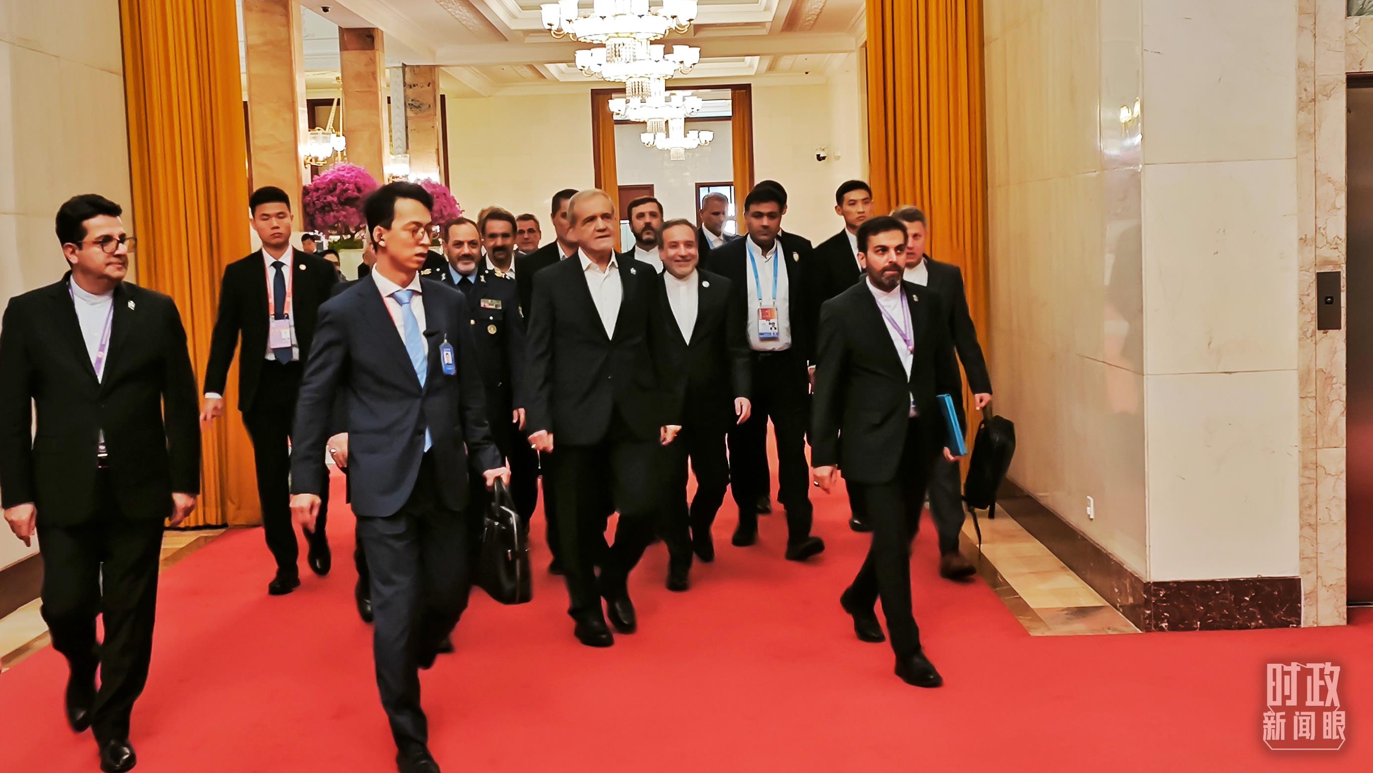△伊朗總統佩澤希齊揚走向會見廳。(總臺國廣記者蔡靖骉拍攝)