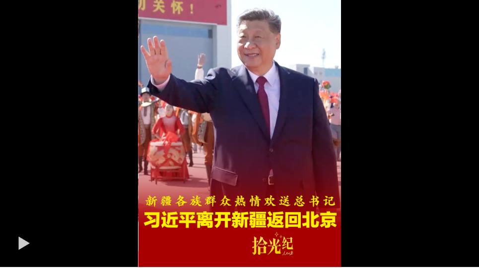 25日,習近平乘專機返回北京。烏魯木齊天山機場奏響別具特色的樂曲《我們在一起》,各族群眾載歌載舞熱情歡送總書記。