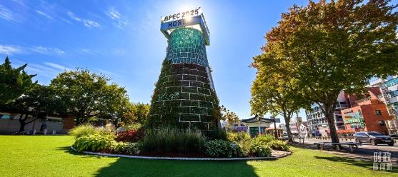 △慶州街頭APEC主題花壇。(總臺央視記者陳漢章拍攝)