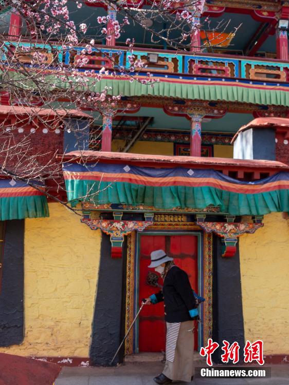 3月23日,拉薩龍王潭寺廟內的杏花、桃花等已經綻放。江飛波 攝