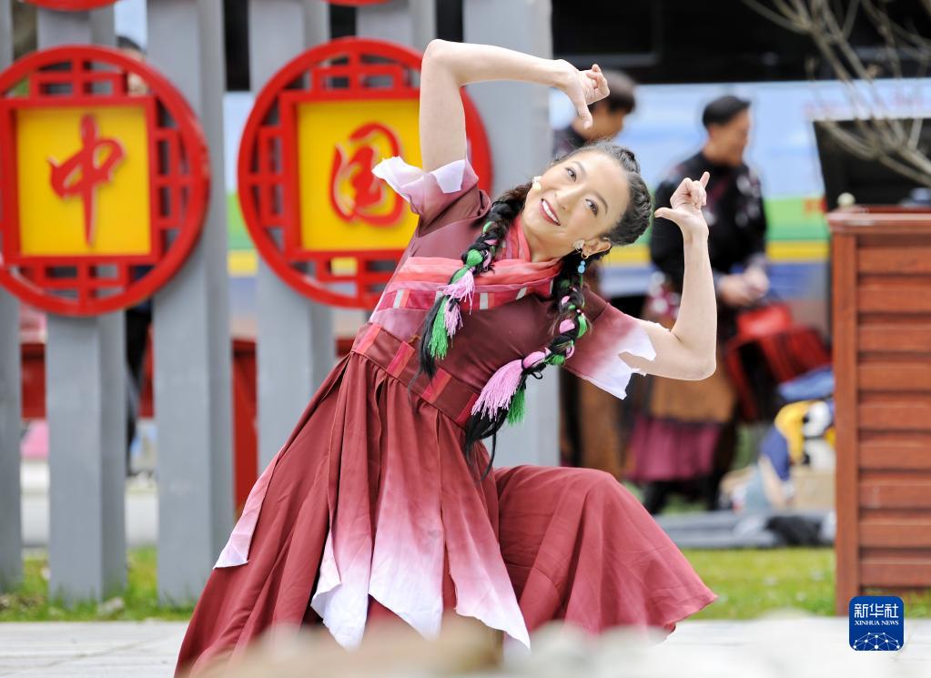 5月31日,演員在隆子縣玉麥鄉文化廣場表演歌舞劇《天邊格桑花》。新華社記者 張汝鋒 攝