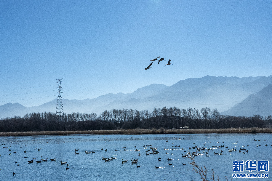 2月2日,在拉魯濕地嬉戲的鳥類。新華網 旦增努布 攝