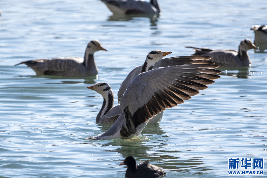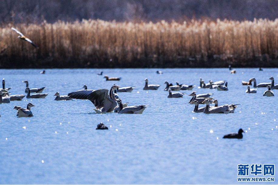 2月2日,在拉魯濕地拍攝的斑頭雁。新華網 旦增努布 攝