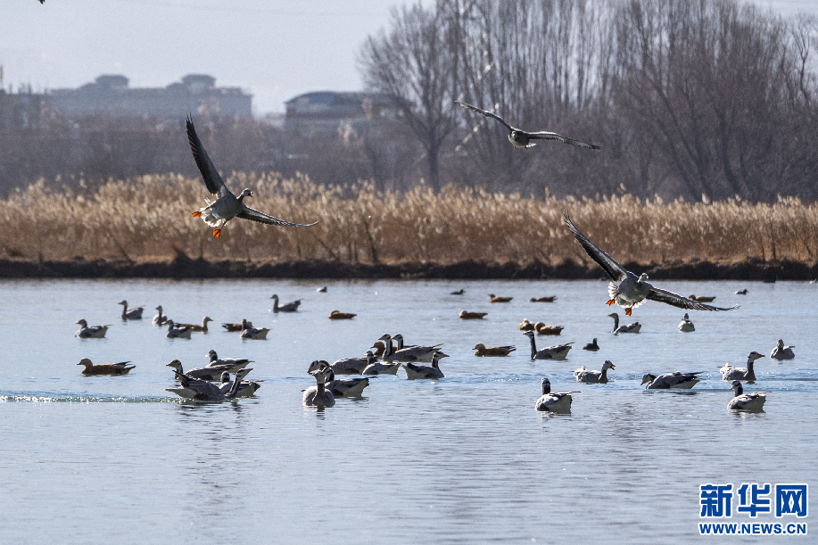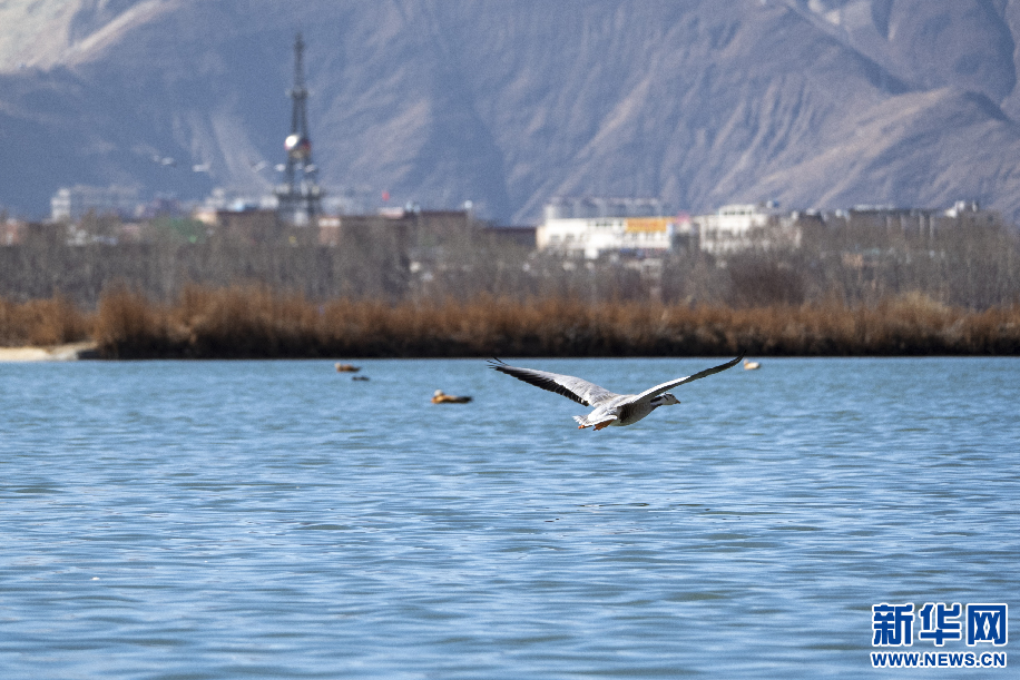 2月2日,在拉魯濕地飛翔的斑頭雁。新華網 旦增努布 攝