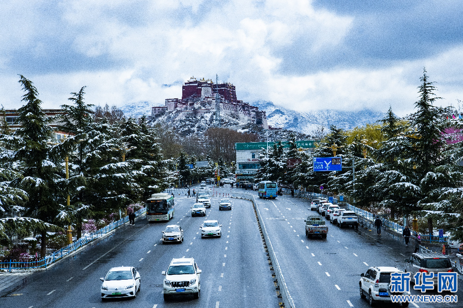 3月30日,在拉薩市南山公園拍攝的雪后布達拉宮。新華網 柑丹鴦琦攝