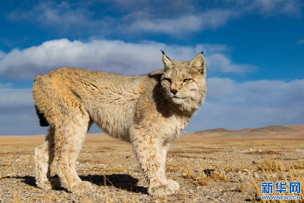 西藏改則縣古姆鄉尋食的猞猁(2023年4月12日)。新華社發(邊巴 攝)