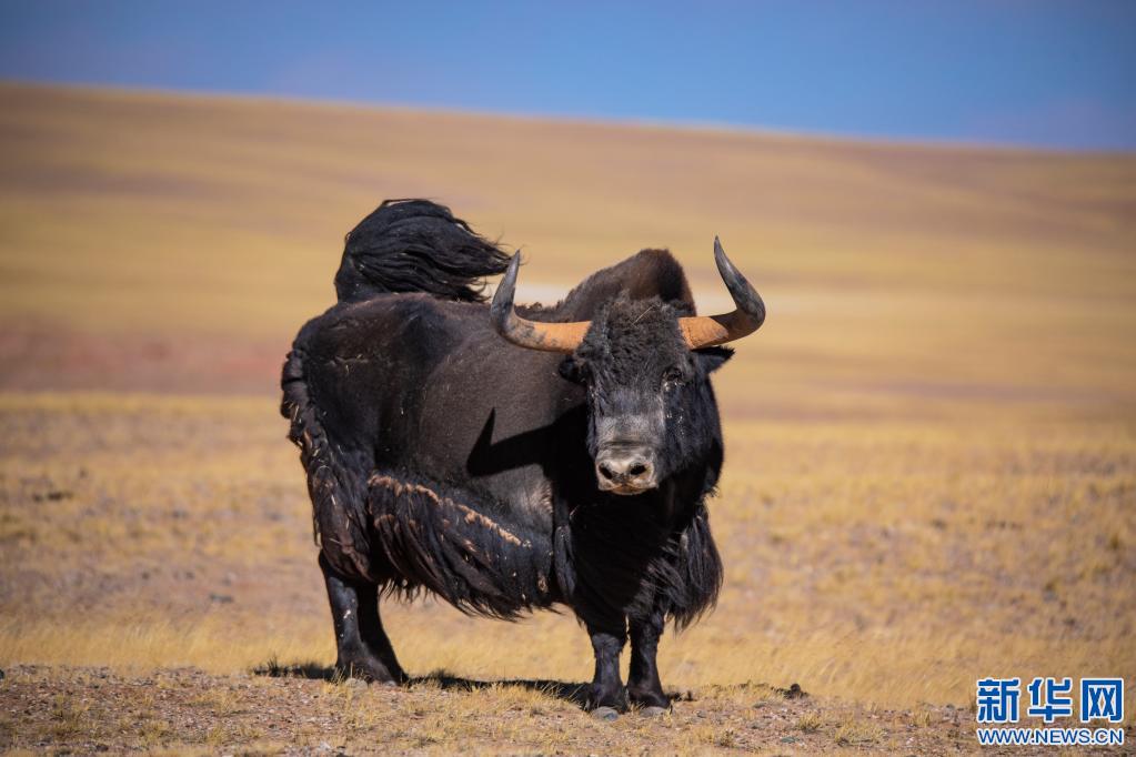 西藏改則縣古姆鄉拍攝到的野牦牛(2022年12月15日)。新華社發(邊巴 攝)