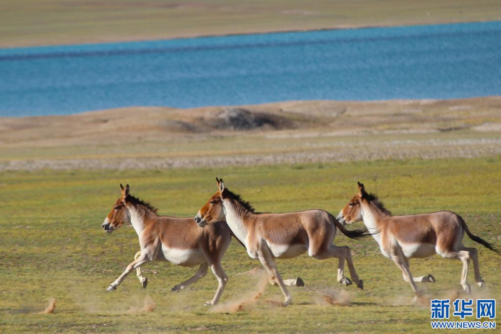 西藏改則縣奔騰的藏野驢(2022年4月8日)。新華社發(邊巴 攝)