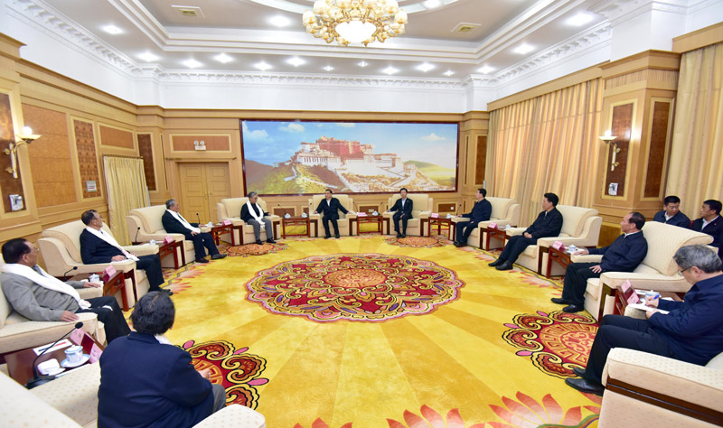 在大昭寺,他看望慰問西藏宗教界愛國人士,希望他們要以歷輩高僧大德為榜樣,為維護祖國統一、民族團結、社會和諧作出有益貢獻。他與游客交流,希望各民族大團結就像唐蕃會盟碑一樣,屹立千年、堅如磐石。