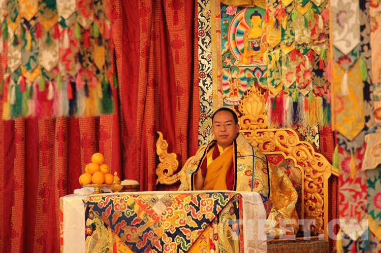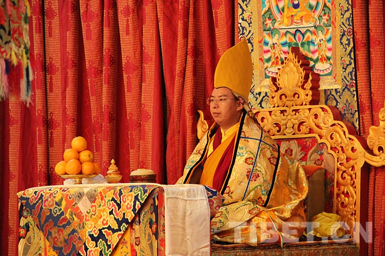 圖為十一世班禪端坐法座,領誦經文。攝影:李元梅