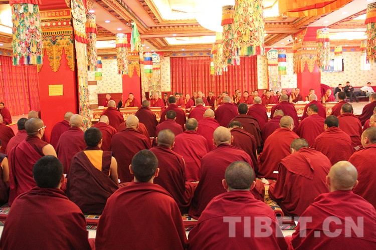 法會禮請全國政協常委、中國佛教協會副會長班禪額爾德尼?確吉杰布拈香主法,中國藏語系高級佛學院領導、經師、學員及宗教界教職員工約130人參加法會。