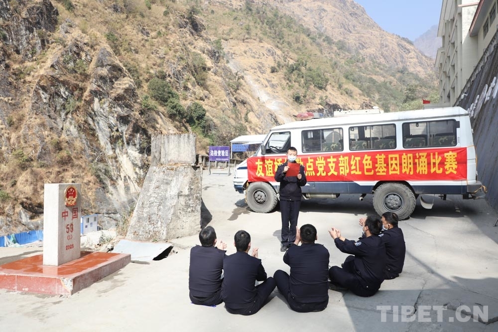 中國西藏網訊 為提升完善四強黨支部建設,豐富一線執勤民警文化生活,1月27日,西藏自治區聶拉木出入境邊防檢查站友誼橋執勤點在53號界碑旁舉行紅色基因朗誦比賽,為中國共產黨百年華誕獻禮。